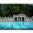 very large pool, surrounded by trees and shaded tables with ceiling