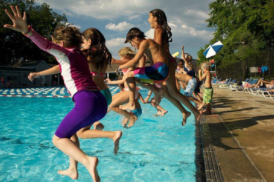 summer diving, jumping and playing in the water. Legion Pool represents